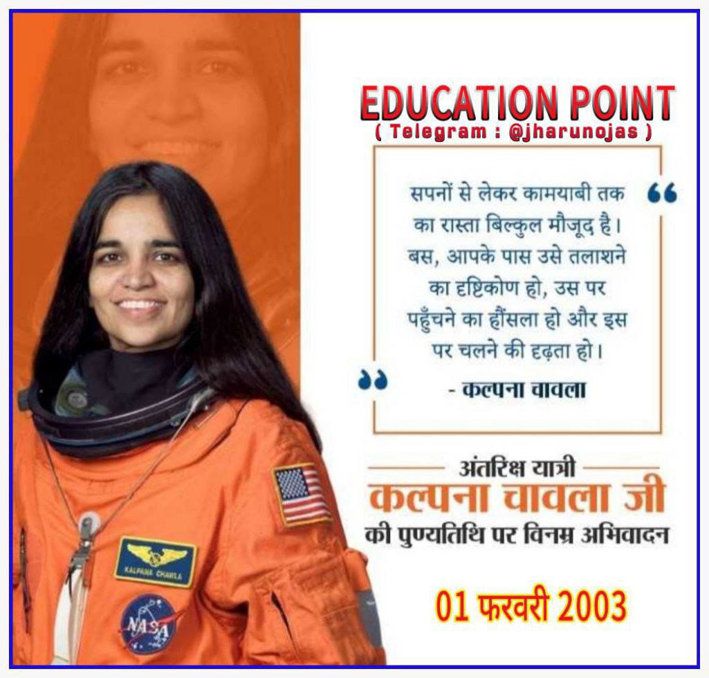 01 फरवरी 📜 कल्पना चावला की पुण्यतिथि  पर विशेष
