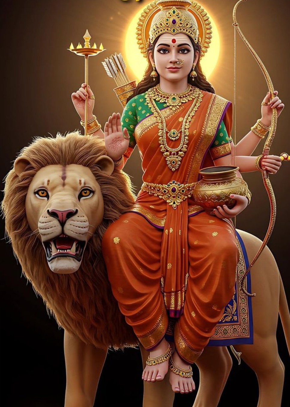ये सभी सिद्धियों और निधियों को देने वाली माता का वाहन शेर हैं।