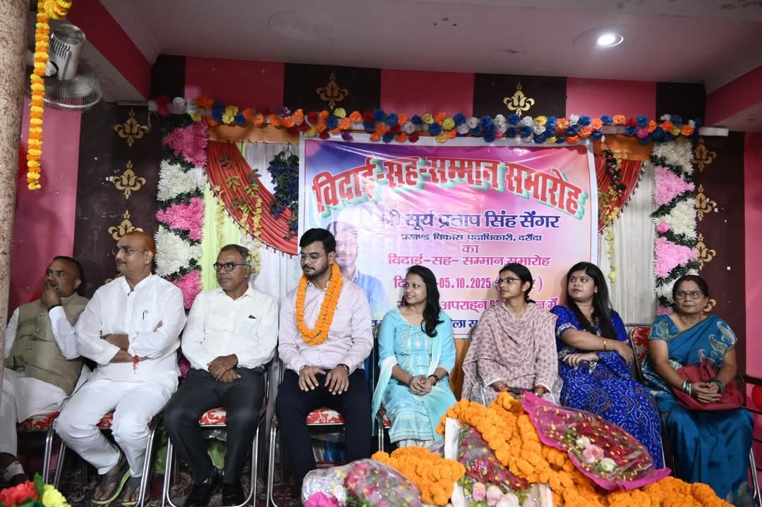 सिवान जिले के दारौंदा प्रखण्ड के निवर्तमान प्रखण्ड विकास पदाधिकारी (बीडीओ) सूर्य प्रताप सिंह सेंगर के सम्मान में रविवार को प्रखण्ड स्थित एक निजी होटल में विदाई सह सम्मान समारोह का आयोजन किया गया। इस अवसर पर प्रखण्ड के अधिकारी, कर्मचारी तथा जनप्रतिनिधि बड़ी संख्या में उपस्थित रहे। कार्यक्रम के मुख्य अतिथि के रूप में स्थानीय विधायक श्री ब्यास सिंह शामिल हुए, जिन्होंने बीडीओ सेंगर के कार्यकाल की सराहना करते हुए उन्हें उज्जवल भविष्य की शुभकामनाएं दीं।