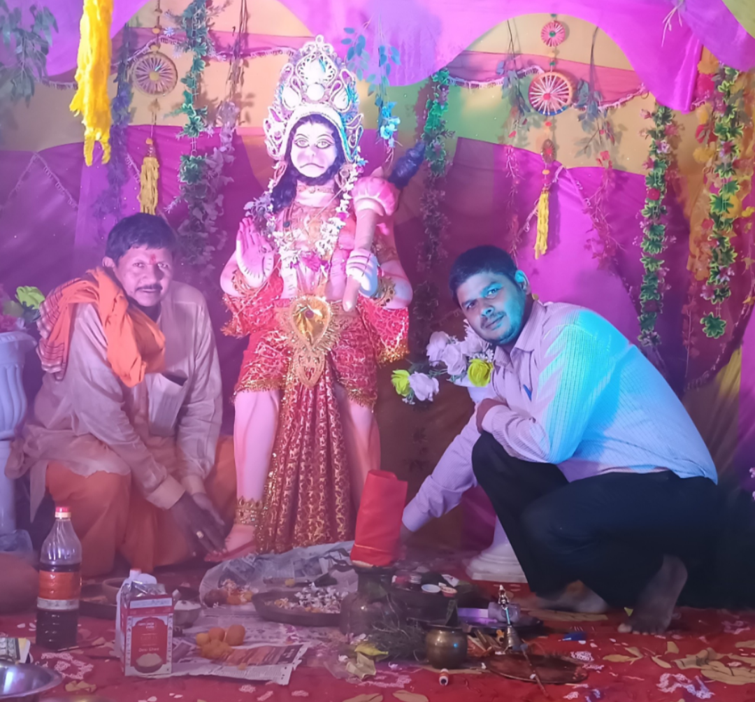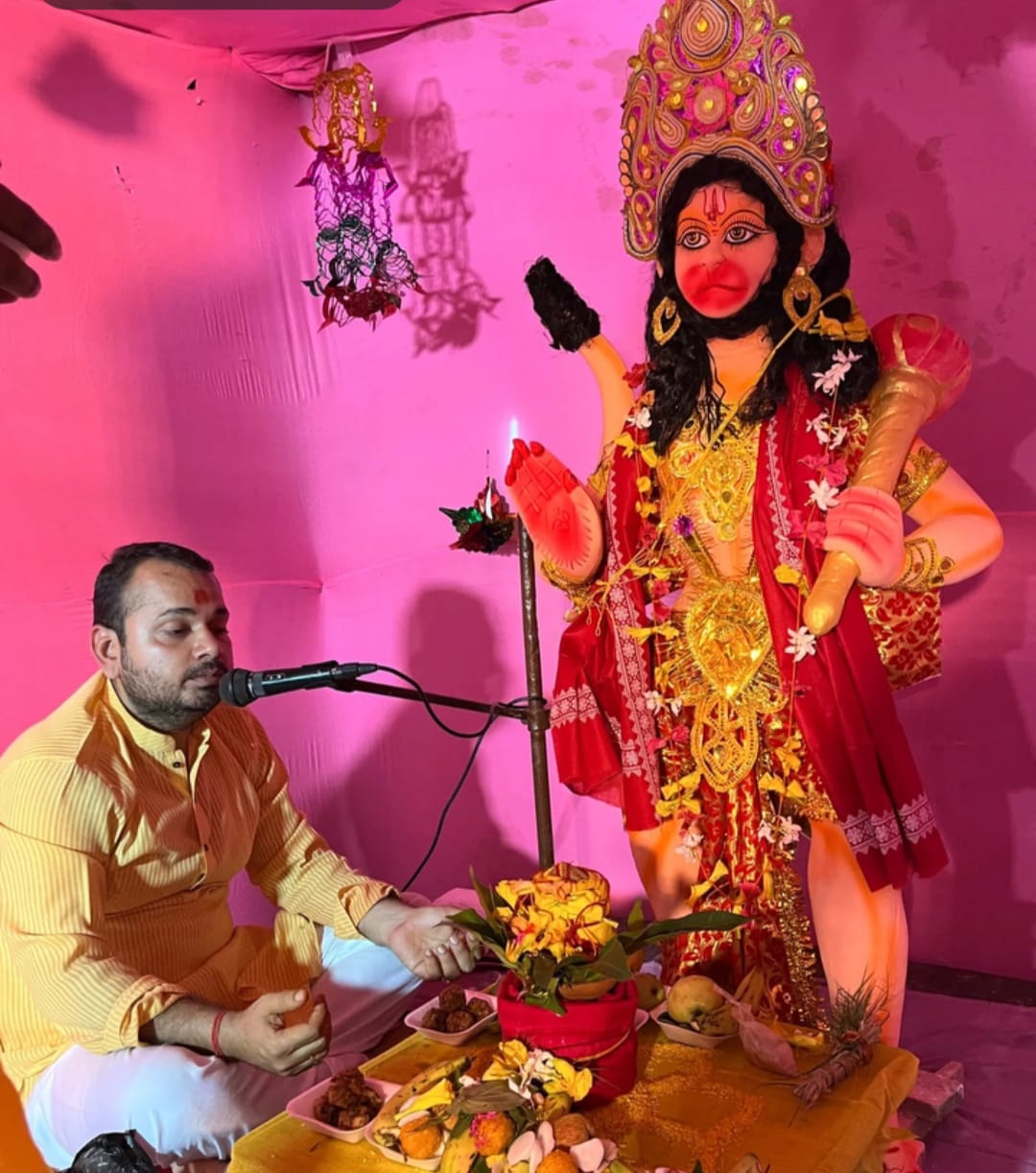 वही पूजन के क्रम में नितेश पाण्डेय जी ने कहा कि हनुमान जी कलियुग के जागृत देव है वे आसानी से अपने भक्तों पर प्रसन्न होते हैं और उनकी मनोकामनाओं को पूरा करते हैं।