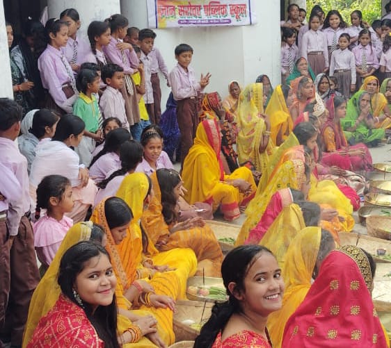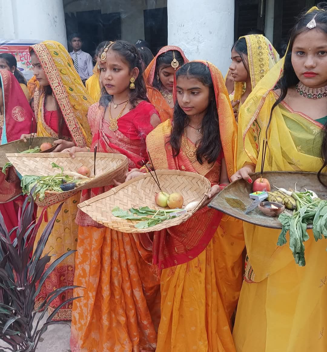 स्कूली बच्चियों ने विद्यालय के परिसर में छठी मईया का सिरसोता बनाकर केला के स्तम्भ से सजाकर छठी मईया के पूजा से लेकर भगवान सूर्य को अर्घ्य देने तक पूरी प्रक्रिया पारंपरिक रीति रिवाज के अनुसार बहुत ही सुंदर ढंग से निभाया।