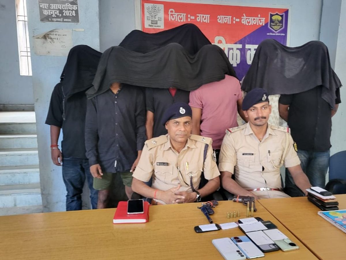 सूचना की पुष्टि के बाद बेलागंज पुलिस, तकनीकी शाखा और एसटीएफ की संयुक्त टीम ने छापेमारी कर अपराधियों को पकड़ लिया। जिसकी पहचान मुन्ना कुमार, सचिन कुमार, मो. सोहेल, राजा कुशवाहा, गौरव कुमार, कुमार सोनू, संतोष कुमार और विकास कुमार के रूप में हुई है।तलाशी के दौरान मुन्ना कुमार के पास से लोडेड पिस्तौल और मोबाइल फोन मिला।