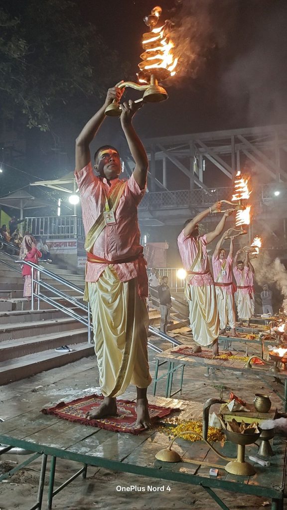 त्रिवेणी महाआरती का शुभारंभ महाकाल बाबा के वैदिक मंत्रोच्चार के साथ हुआ। इसके उपरांत नारायणी, गंगा एवं सोनभद्र नदियों का विधिवत पूजन किया गया। जैसे ही दीपों की ज्योति प्रज्वलित हुई और मंत्रोच्चार के साथ महाआरती आरंभ हुई, पूरा वातावरण भक्तिमय और दिव्य ऊर्जा से ओतप्रोत हो गया। दीपों की जगमगाहट और शंख-घंटों की ध्वनि से श्रद्धालु भाव-विभोर हो उठे।