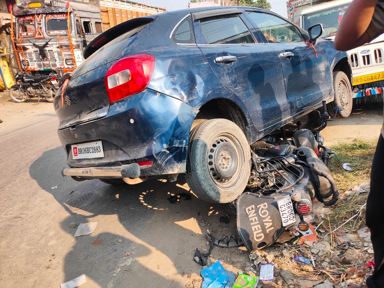 वहीं बेलोनो चालक वैशाली के लाल गंज थाना क्षेत्र के काठी गांव के जितेंद्र तिवारी के पुत्र शिवम कुमार शामिल हैं। बुलेट चालक मशरख से परसौना जा रहा था जबकि बेलोनो मारुति कार बनियापुर से घर लाल गंज लौट रहा था।