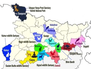 - कैमूर वन्यजीव अभयारण्य, कैमूर जिला, बिहार।