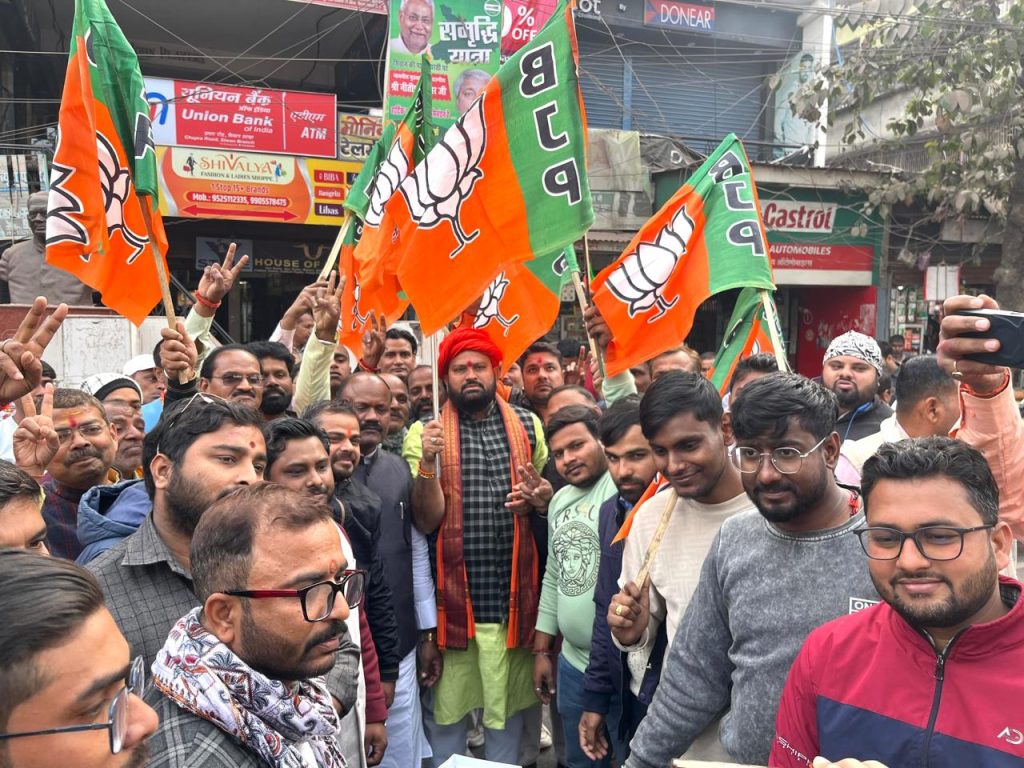 देश में आम बजट पेश होने पर भाजयुमो ने वितमंत्री को दी बधाई, जश्न मनाया