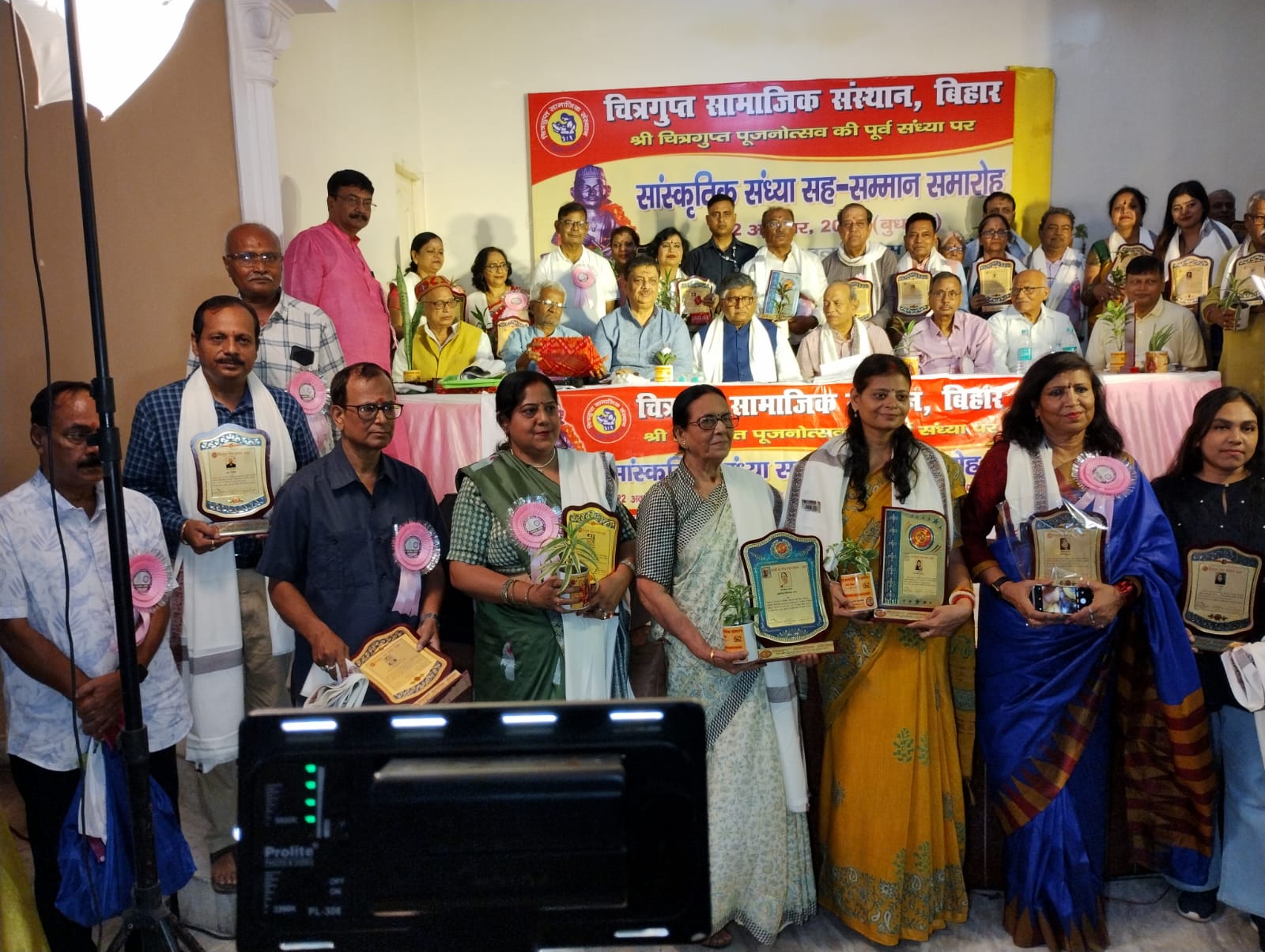 सामाजिक सांस्कृतिक संस्था चित्रगुप्त सामाजिक संस्थान के 52 वें समारोह के अवसर पर भगवान श्री चित्रगुप्त पूजनोत्सव की पूर्व संध्या पर आज सांस्कृतिक संध्या सह सम्मान समारोह का आयोजन पटना सिटी स्थित गिरिराज उत्सव पैलेस में किया गया।