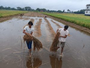 किसान अपने धान की फसल को बचाने के लिए पानी में से फसल को छानकर सड़क किनारे या ऊंची जगह पर रखे हुए हैं ताकि फसल पूरी तरह नष्ट न हो जाए जहां धान की अमनौर में बड़े पैमाने पर.धान खेती की जाती है लेकिन इस बार रुक-रुक कर तीन दिन से बारिश होने के कारण फसल बर्बाद हो गई और किसान भी.बर्बाद हो गए वही.