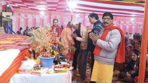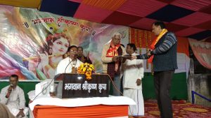 व्यास पीठ से महाराज जी ने भगवान श्री कृष्ण का आशीर्वाद स्वरुप अंग वस्त्र शरद चौधरी एवं जादूगर विजय को भेंट की। भागवत कथा के मुख्य यजमान श्री चंद्रभूषण प्रसाद अपने पत्नी श्रीमती किरण रानी जी के साथ उपस्थित सभी दर्शकों के संग कथा सुने।इस भागवत कथा की व्यवस्था देखने में सक्रिय अपना योगदान दे रहे थे.