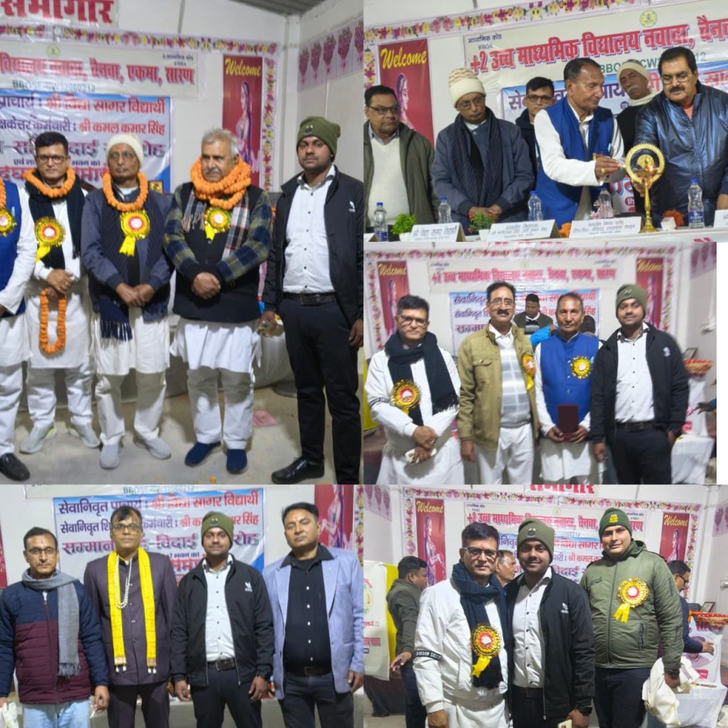 सारण जिला के एकमा प्रखंड के नवादा गांव स्थित उच्च माध्यमिक विद्यालय के सभागार में सेवानिवृत्त प्रधानाध्यापक विद्यासागर विद्यार्थी व सेवानिवृत्त आदेशपाल कमल कुमार सिंह उर्फ पहाड़ सिंह के सम्मान में विदाई सह सम्मान समारोह आयोजित किया गया। इस अवसर पर विद्यालय के नव-निर्मित भवन का भी उद्घाटन किया गया। समारोह का आयोजन प्रभारी प्रधानाध्यापक हरदन बाबू सिंह की अध्यक्षता में संपन्न हुआ।