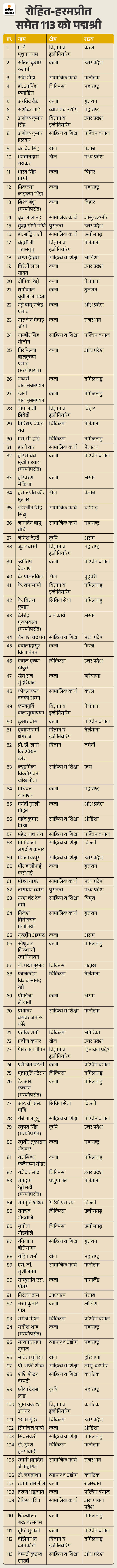 5 पद्म विभूषण, 13 पद्म भूषण और 113 पद्म श्री