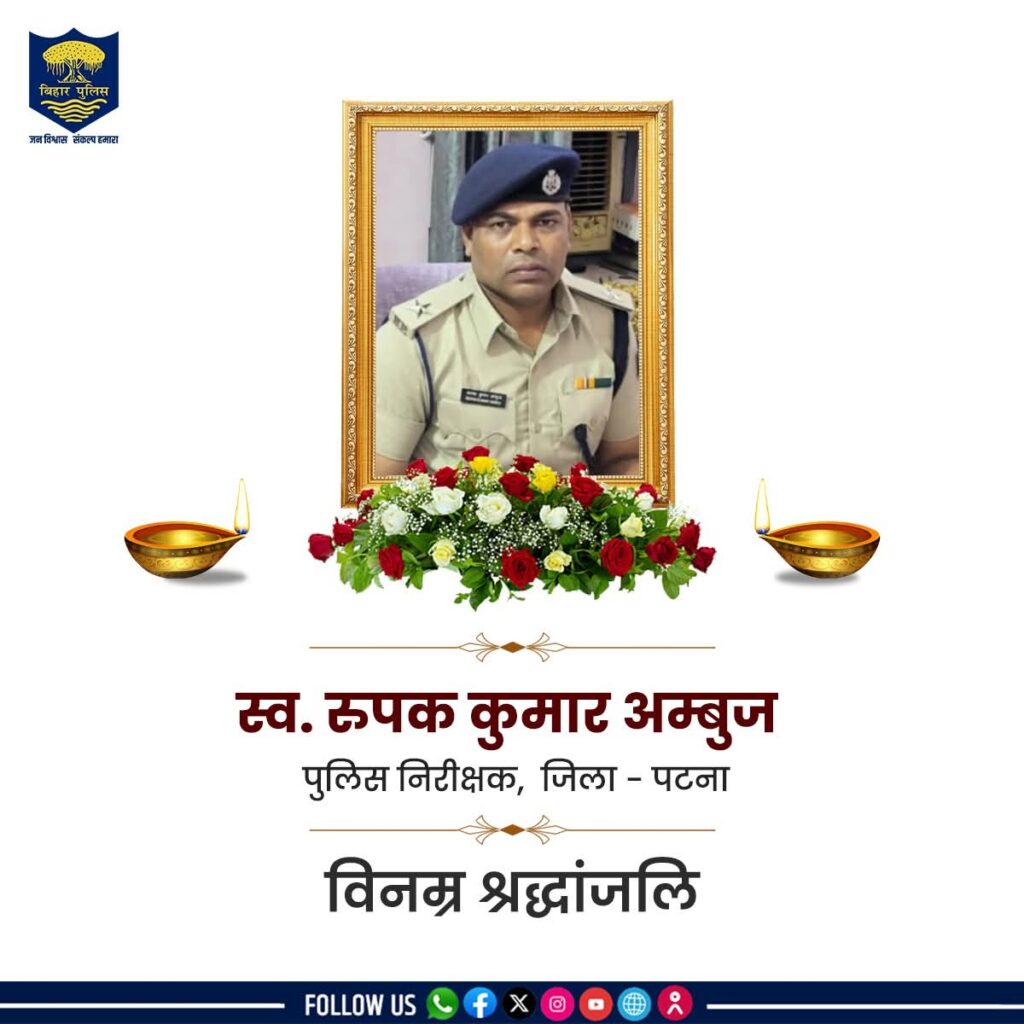 बिहार पुलिस के लिए गत दिवस एक बेहद ही दुखद खबर बिहार पुलिस के एक इंस्पेक्टर की मौत डेंगू से हो गयी है. पटना के फतुहा के पूर्व थानाध्यक्ष इंस्पेक्टर रूपक कुमार अम्बुज का निधन दिल्ली में इलाज के दौरान हो गया.