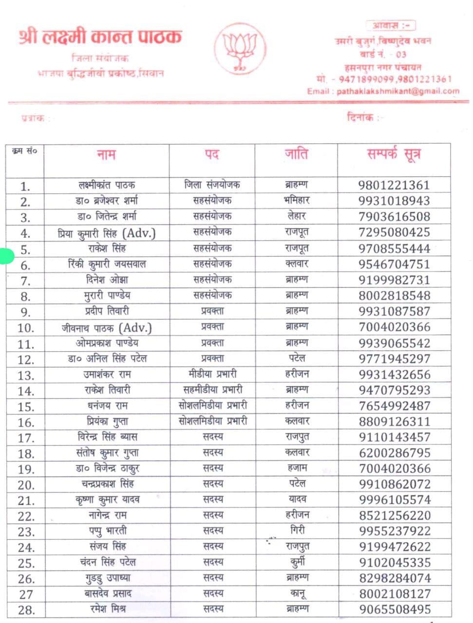 सीवान के भारतीय जनता पार्टी के बुद्धजीवी प्रकोष्ठ के जिला संयोजक लक्ष्मीकांत पाठक ने रघुनाथपुर बाजार स्थित