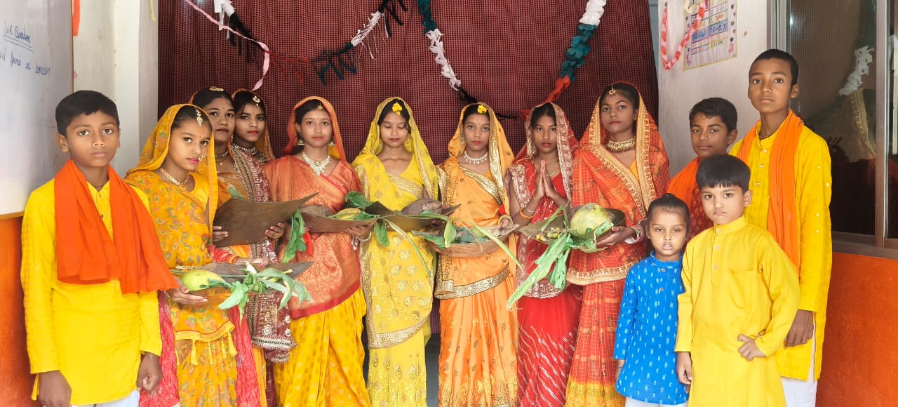 रघुनाथपुर : सांदीपनी विद्या मंदिर के छात्रों ने किया छठ पूजा का आयोजन
