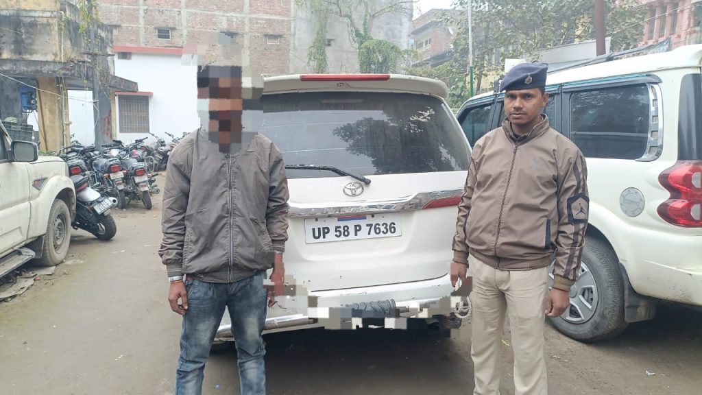 सीवान पुलिस ने चार पहिया वाहन से शराब लाते एक तस्कर को रंगे हाथ किया रफ्तार
