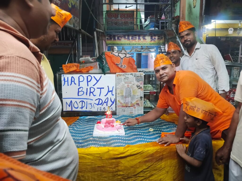 सीवान : प्रधानमंत्री नरेंद्र मोदी के जन्मदिन पर भाजपा मंडल उपाध्यक्ष के दुकान पर केक काटकर मनाया गया जन्मदिन