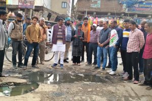 रघुनाथपुर : सड़क पर बहते नाले की सफाई कराने को लेकर हुआ निरीक्षण