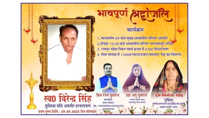 अमनौर हरनारायण पंचायत के मुखिया पति स्व. वीरेंद्र सिंह की पहली पुण्यतिथि मनाई गयी