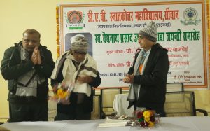 सीवान नगर स्थित स्थानीय डी.ए.वी स्नातकोत्तर महाविद्यालय में स्वर्गीय वैधनाथ प्रसाद उर्फ दाढ़ी बाबा की 143वीं जन्मजयंती मनाई गई। महाविद्यालय के परिसर स्थित उनके प्रतिमा पर जयप्रकाश विश्वविद्यालय के कुलपति प्रो. प्रमेन्द्र कुमार वाजपेयी ने माल्यार्पण कर उनके प्रति श्रद्धासुमन अर्पित किया। तत्पश्चात महाविद्यालय के सर्वोदय सभागार में एक समारोह का आयोजन किया गया। जिसकी अध्यक्षता करते हुए कुलपति महोदय ने अपने सारगर्भित उद्बोधन में कहा कि हम सभी को संकल्पित होकर इस महामानव के मार्ग पर चलना चाहिए।