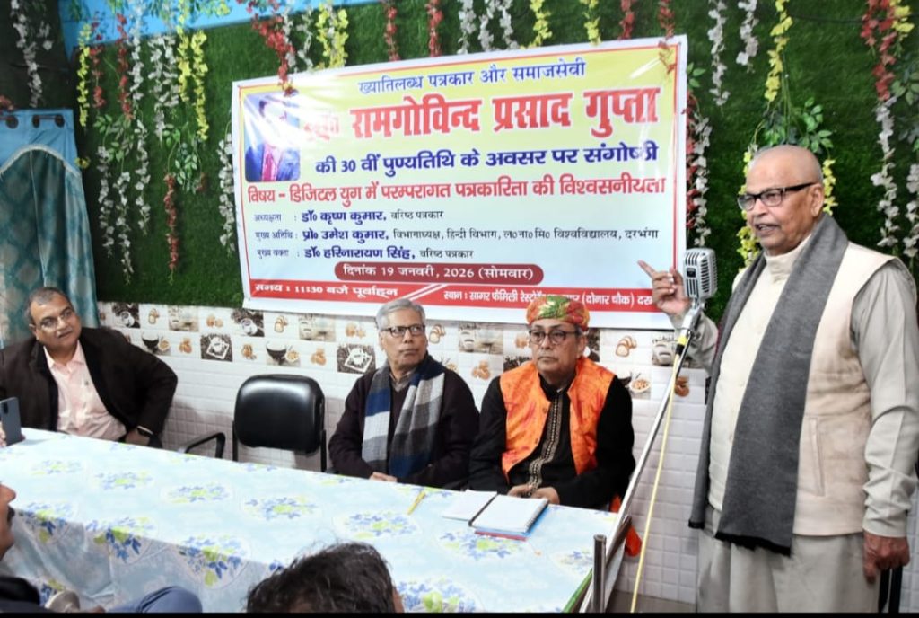 प्रो. सिंह ने आज यहां वरिष्ठ पत्रकार स्व० रामगोविन्द प्रसाद जी की 30वीं पुण्यतिथि पर दोनार स्थित सागर रेस्टोरेंट के सभागार में “डिजिटल युग मे परम्परागत पत्रकारिता की विश्वसनीयता” विषयक सेमिनार को संबोधित करते हुए कहा कि आधुनिक युग में सूचना और संचार प्रौद्योगिकी के तीव्र विकास ने समाज के हर क्षेत्र को प्रभावित किया है, और पत्रकारिता भी इससे अछूती नहीं रही। परम्परागत पत्रकारिता, जो कभी समाचार पत्रों, रेडियो और टेलीविजन के माध्यम से जनता तक सूचनाएँ पहुँचाने का प्रमुख साधन थी, अब डिजिटल युग की पत्रकारिता के उदय के साथ नई चुनौतियों का सामना कर रही है। डिजिटल मीडिया ने जहाँ एक ओर सूचना के प्रसार को लोकतांत्रिक बनाया है, वहीं दूसरी ओर इसने परम्परागत पत्रकारिता की विश्वसनीयता, प्रासंगिकता और आर्थिक स्थिरता पर गंभीर प्रश्नचिह्न लगाए हैं।