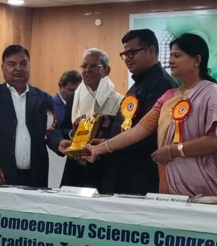 इस अवसर पर सीवान के प्रतिष्ठित वरिष्ठ होमियोपैथिक चिकित्सक एनं राष्ट्रीय उपाध्यक्ष, एच0एम0ए0आई0  डॉ. यतीन्द्रनाथ सिन्हा को केन्द्रीय मंत्री माननीय डॉ. राज भूषण चौधरी एवं बिहार सरकार के पिछड़‌ा वर्ग एवं अति पिछड़ा वर्ग कल्याण विभाग की मंत्री रमा निषाद ने अंगवस्त्र एवं  मोमेंटो देकर  सम्मानित किया।