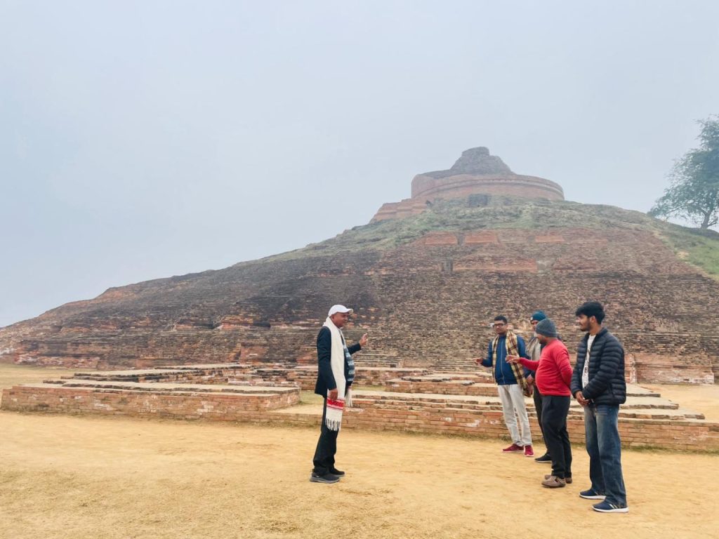 शोधार्थी डा कृष्ण कुमार सिंह रविवार को केसरिया स्तूप के भ्रमण करने एक टीम के साथ गए थे ।